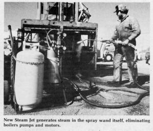 Simple New Way To Steam Clean Equipment FARM SHOP Tools 6-6-23 On-the-farm steam cleaning could become a common practice with the help of the new Steam Jet steam cleaner imported from Australia by the Air Products Co. It develops high pressure steam in the spray wand itself, completely eliminating bulky boilers and high maintenance coils, motors and pumps.