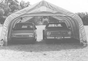 A basic 12 by 20 by 8-ft. cover for car or pickup sells for $649 complete. Other sizes available.