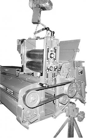 The heart of the retrofit kit is a belt-driven insert with two 9 by 24-in. machine-grooved rolls that turn at different speeds. Processed silage moves quickly through to the auger assembly of the harvester. By removing 8 bolts the insert can be easily removed and replaced with a haylage chute (included with the kit) for processing haylage. The conversion takes only about 30 minutes. List price for the retrofit kit is $11,500.