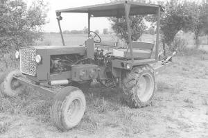 With a conventional tractor he was continually braking and clutching to run at a slow enough speed to thoroughly work up the soil between rows.
