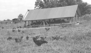 Beck-Chenoweth favors a new-style skid house which can be towed from place to place. It'll handle up to 400 chickens.