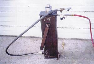 "It's really handy and works especially well for refilling any heavy weight oil that doesn't flow readily through a goosenecked funnel," says Matzner. "The tank holds 3 gal. so I can pour the entire contents of a 2 1/2-gal. jug into it. I use it to transfer oil into transmissions, rear ends, mechanical front wheel drive hubs, or any gearbox with a hard-to-reach fill hole. I recently put 2 1/2 gal. of 80-90 weight gear lube into the transmission of a combine in one minute and fifteen seconds with no spills. A funnel would have taken a half hour or more.