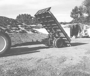 The truck had an old Garwood hydraulic dump hoist, which he left in place. He added hoses to hook up to tractor remote hydraulic outlets.