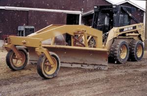 "Skid loaders do a lot of hopping and skipping, but with the frame and blade out front supported by a pair of wheels, the bouncing is greatly reduced," says Jepps. "I use the blade as a snowplow during the winter and to back fill trenches during the summer. I already had the blade. My total cost was just under $600. Hydraulic hoses, valves and cylinders accounted for about 80 percent of the cost. I munted a valve body that slips into a quick-change slide holder on front of the skid loader where it's easy to reach. When I unhook the grader, I pull two quick release handles, lift the valve out of the slide and throw it on the grader, then back away."