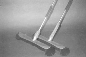 Christopher Kimbro, a senior at California State University-Northridge, designed the broom as a school project. A compression spring is fitted into the handle, just above the broom head. When you push forward on the broom, the spring compresses and then pops forward, making sweeping quicker and more efficient.
