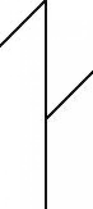 Here's how it works. The grid, at left, shows the position of angled lines surrounding a single long straight line. The lines down the left side are numbered in 10's from 10 to 90. The lines down the right side are numbered from 1 to 9. To create a number, you draw a straight vertical line representing the long line down the middle and then put one or more lines on either side of the line. If there's no line on a side, it's zero. To make bigger numbers, you combine two or more sets of symbols together.