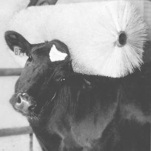 The 4-ft. long, 32-in. dia. Bova Brush is powered by a small electric motor. The brush pivots from end to end like a teeter totter to accommodate animals of different sizes. The mounting bracket is hinged and, by removing a pin, can be folded to the side in order to make room for scraping equipment in alleyways. "The bristles should last for 10 or 15 years before they have to be replaced," says a company spokesman.