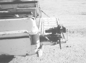 He found an old 2 in. Chevy tailgate hinge and welded one side of the hinge vertically inside the pickup bed next to the tailgate opening. He welded the other side of the tailgate hinge to the base of the vise.