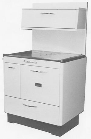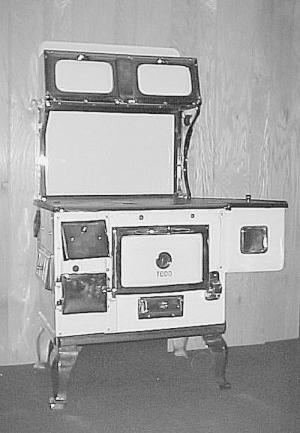 Knox recently introduced the "Todd Stove", an old-time looking stove designed to incorporate the best features of 15 cook stoves originally produced in the early 1900's. It's more showy than the Mealmaster, made of solid cast iron and steel. The trim is nickel electroplated. It can be ordered with a porcelain finish in black, white or almond, and has double overhead warming cabinets and a built-in oven thermometer to help keep the baking temperature just right.