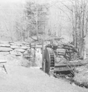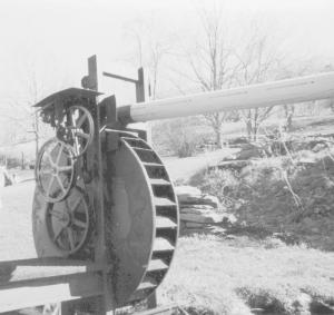 To make the water wheel, he cut off both ends of a large oil tank to make the sides and then welded in buckets from an old grain elevator. The wheel rotates on a 2 7/16-in. dia. solid shaft.