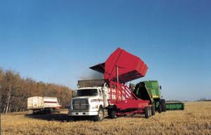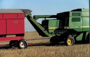 Chute Blows Straw And Chaff Into Trailing Wagon