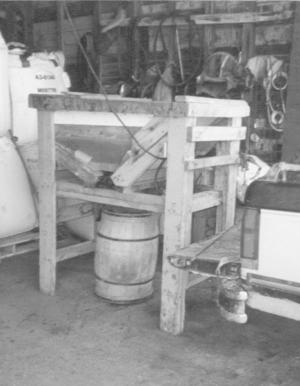 "There's a funnel-shaped hopper at the top of the cylinder which feeds the potatoes to the knives. A barrel underneath the knives and hopper collects the cut up potatoes," Jason explains. "It works really well and took only about two days to build. The materials, which included rough lumber, plywood, chipper knives and the motor, totaled about $400."