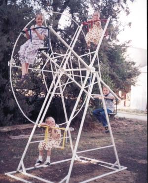 We got the idea to build a four-seat Ferris wheel from an old one that a neighbor had. It starts about 10 ft. 6 in. high and turns at the center on sealed bearings. When riding you balance people of equal weight across from each other, and as each person gets to the bottom they give a push off the ground to keep it spinning. Although the original one was made as playground equipment for children, we beefed it up so adults can take their turn going around, too. It has been a lot of fun for our four children, but could be dangerous if not used with caution and adult supervision. (Jared Jamison, 2330 Co. Rd. 76, Quinter, Kansas 67742 ph 785 754-2157)