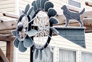Windmill Weather Vane Made Out Of Two Bicycle Wheels