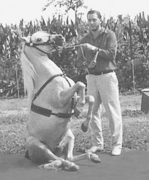 The longer he has an animal and the more eager it is to learn, the better trained it will be. Wallen has a crÞme colored pony that is the only one he knows of in the world that can climb up on a barrel and roll it with all four feet. It is also trained to do a wide variety of other acts, such as sitting up like a dog, something Wallen says only his family members know how to teach.