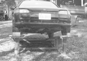 Bayard G. Young, Elkwood, Va.: "Here's an easy way to change your own oil and filters and do other under-body work. I wish I had built this car rack years ago.