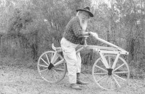 Smart built his replica based on old drawings of the bike. "The wheels and frame are all wood. The only metal is in miscellaneous hardware," says Smart.