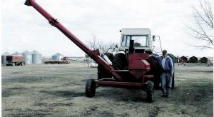 "I spent less than $6,000 to build it, not counting my labor. The cheapest grain vac on the market with comparable capacity sells for $16,000," says Kolanko. "And my grain vac is built a lot stronger. I've used it on a variety of crops and haven't had any problems yet," says Kolanko. "I have no sweep augers in my bins - I just go into them and suck the grain out. The 15-ft. auger is high enough to load directly into the biggest semi grain trailers."
