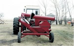"I built it because I didn't want to spend the money for a conventional grain vac and I wanted a simpler design with less maintenance. Best of all, it cost only a fraction as much as a commercial unit," says Mitch Kolanko, Hubbard, Sask., about his 2-wheeled, home-built, pto-operated grain vacuum.