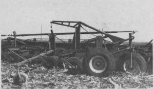 The marker, made from a disc hiller off a cultivator, is mounted on an adjustable arm, made of 1 1/2 in. tubing. The arm pivots on the marker frame mounted on the plow.