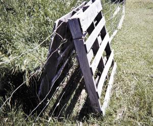 "It's a simple idea that costs almost nothing and really works," says Blatter. "I use these gates between pastures. The gates let me cross the fences without snagging my pants or having to crawl through the wire. I usually place the pallets alongside a fence post to help stabilize them."