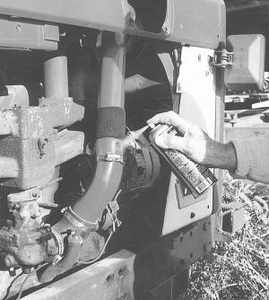 Bill Marley, Nokomis, Ill., came up with an easy way to give his engine a quick boost. He drilled a hole about 3/4 in. in diameter into the intake air pipe going to the carburetor. Then he covered it with a sleeve cut from a sock.