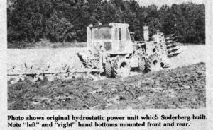 When the driver comes to the end of the field, he doesn't even have to turn around. He simply stops the tractor, raises the six bottoms he was pulling, lowers the six bottoms mounted up front, swivels the seat and throws the tractor in reverse.