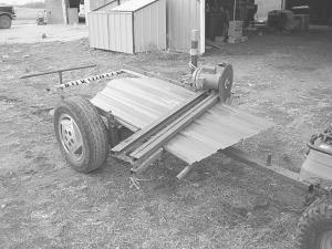 "Whenever I start moving the blade across at an angle the sheet metal tends to vibrate and pull the sheet back. To keep the metal from sliding I clamp a vise grip onto a small metal tab on back of the trailer."