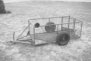 All Seasons Feeders sells two traps, one that sets on the ground and one on wheels. The 200-lb., 4 by 8 by 3-ft. tall pens are framed with angle iron and covered with hog panels on the sides and cattle panels on top. A door on one end has a cable and spring so hogs can get in, but not out. Traugott has heard of traps catching 14 hogs at a time.