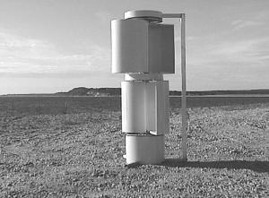 "The prototype is only 7 ft. tall and will produce about 1/2 kW with a 27 mph wind," says Kaliski. "It could be made larger or smaller. Because of its gyroscopic action, it can be set in place without anchors. It could be portable for use with RVs to charge batteries or for use in emergency situations."