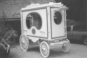 His company sells calliopes without wagons or trailers for under $10,000. With custom designed wagons, prices start at $36,000. Wagons with a calliope weigh about 5,000 lbs.