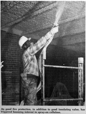 Cellulose wood fiber has been around for years as a loose-fill type of insulation. Now, thanks to new equipment and a new liquid adhesive, it's available as a spray-on insulation that adheres to metal, wood, concrete, glass and most other surfaces.