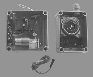 The system is very simple, Breckenridge says. The motor operates on four AA batteries and is connected by a cord to the door. The timer or light sensor turns the motor on to shut or open the door.