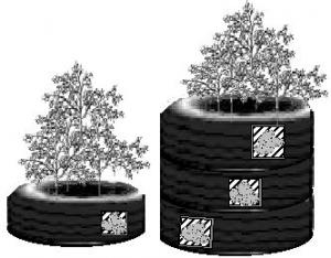 The process is simple. Fill a tire with dirt and plant potatoes as usual. As the potatoes grow, add another tire and more soil. Continue adding for a total of up to six tires. As the plant grows it adds roots at each level that produce more potatoes. Schmal cut four 4 by 4-in. access holes in the side of each tire. When the plant bloomed she reached into the doors on the lowest tire to find and pick new potatoes. She worked her way up the tires through the season.