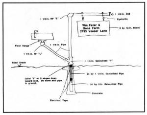 "This combination mailbox and sign post has withstood many direct blasts from the county snowplow," says William Fazer, Powers, Mich., about the post he designed that swings freely if struck and then swings back into its original position by itself thanks to an angled pipe fitting at the base.