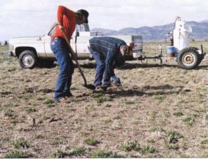 Rate, pressure and duration of application are electronically controlled by a 12 volt control box. A horn on the box blows when chemical is flowing. The box also counts each treatment. The fumigant comes in a tank and nitrogen gas is used to pressurize the tank and force the substance out through hoses to the probe.