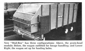 "Just one wagon does it all ù lets you handle silage, grain or baled hay by buying just one standard box and three interchangeable head modules," explains Jack Miklasz, area sales manager for Forage King Industries, Ridgeland, Wis., about the company's new Mod-Box.
