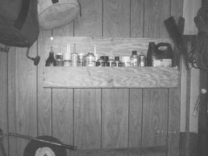 Tom Chaney, Chrisman, Ill.: "I use an old mini bus as a service truck and got tired of watching caulking tubes and spray cans roll around on the bus's floor. To solve the problem, I built this can and caulking tube holder, which I mounted on one of the bus's walls. The holder measures 3 ft. long, 5 1/2 in. deep, and 14 in. high and is made out of 3/4-in. thick plywood. It was put together with wood glue and wood screws. There's a 4 1/2-in. gap between the front and back sides of the holder, which is perfect for storing spray cans, caulking tubes, quart oil containers, and so forth."