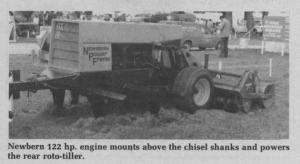 The Newbern Power Frame combines a front set of deep working chisel shanks with the surface cultivation of a rotary cultivator attached at the rear. The cultivator's powered by its own 122 hp. engine.