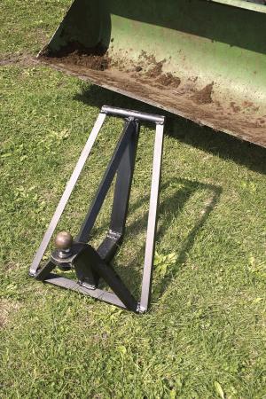 "It holds a trailer as solidly as any bolted-on hitch," says Dreher, who is a retired engineer. He made the slip-in hitch from angle iron and a receiver hitch. The only modification to the bucket is a small bar tach-welded to the top of the inside of the bucket where it's not visible. If he ever sells the tractor he can easily remove the bar.