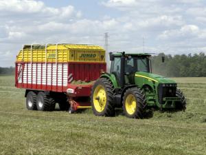 With the Poettinger wagon, the operator picks up a load of forage and delivers it for storage in silos, bags or other systems. Research at numerous centers in Europe and at Pennsylvania State University show it will move more material faster than working with a self-propelled forage harvester.