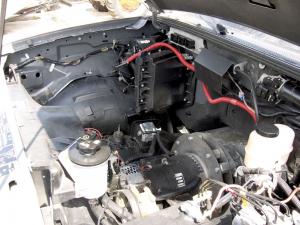 The power steering pump is mounted to the front of the electric motor. Other vehicle systems that remain run on electricity. Albertson expects eventually to capture and use the heat produced by the Mag-Trans system.