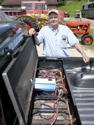 The pickup is powered by a 100V, DC electric motor that draws 50 to 60 amps under load. There's also a battery case with 10 deep cell batteries and the patented Mag-Trans technology.