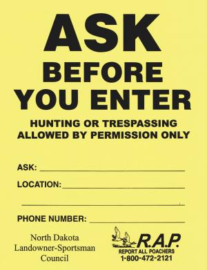 "It's more of a positive sign," says Doug Howie, assistant private lands coordinator with the North Dakota Game and Fish Department. "Many landowners say they just want to know who's out there and maybe tell hunters where not to go on their property."