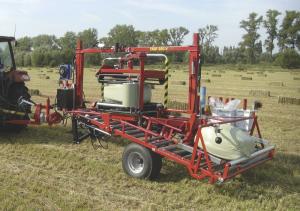 The Tawi is a trailing, single axle wrapper for small square bales. It makes a neat package that customers can transport in their car.