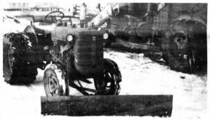 "To help smooth out the ride, I built a set of duals from a pair of New Idea spreader rims which help a lot when we use it to rake hay or do other field chores. I also built a 1-row belly-mount cultivator, grader blade, and front-end snowblade. I also plan to build a lawn-mower because commercial mowers won't fit under the short wheelbase."