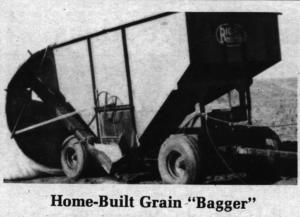 Benes' suggestions for others wanting to make a home-built bagger include: 1. Use an auger with hydraulic motor ù it's more convenient than a belt or chain drive. 2. Keep joints tight where grain enters the auger to prevent grain loss. 3. Use an open end auger and don't let grain pile against the end of the auger. 4. Extend the auger far enough into the bag so grain won't roll down and interfere with unfolding of the bag. 5. Fill bags on the level if possible. If you must store bags on a slope, fill from the bottom of the hill and work up. Working downslope keeps grain rolling down and the bag won't fill completely.