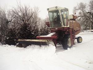 Shad Dewey has a 50-year-old International Harvester combine that does jobs it was never intended to do. “I looked at the prices of used tractors with loaders and thought there had to be a less expensive way to plow snow and move bales,” Dewey says. He found the solution in a self-propelled combine that had “retired” many years earlier.