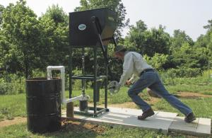 Volume produced also is a matter of the strength of the person pumping. Holliday has run trials using his WaterBuck with a 4-in. brass pump cylinder, a static water level of 80 ft., a 2-in. drop pipe, and a 3/8-in. metal pipe sucker rod.