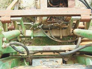 The mower was originally mounted under the belly of a Cub Farmall tractor. Kimball replaced the pto drive with a hydraulic drive and hinged the mower deck to the frame.